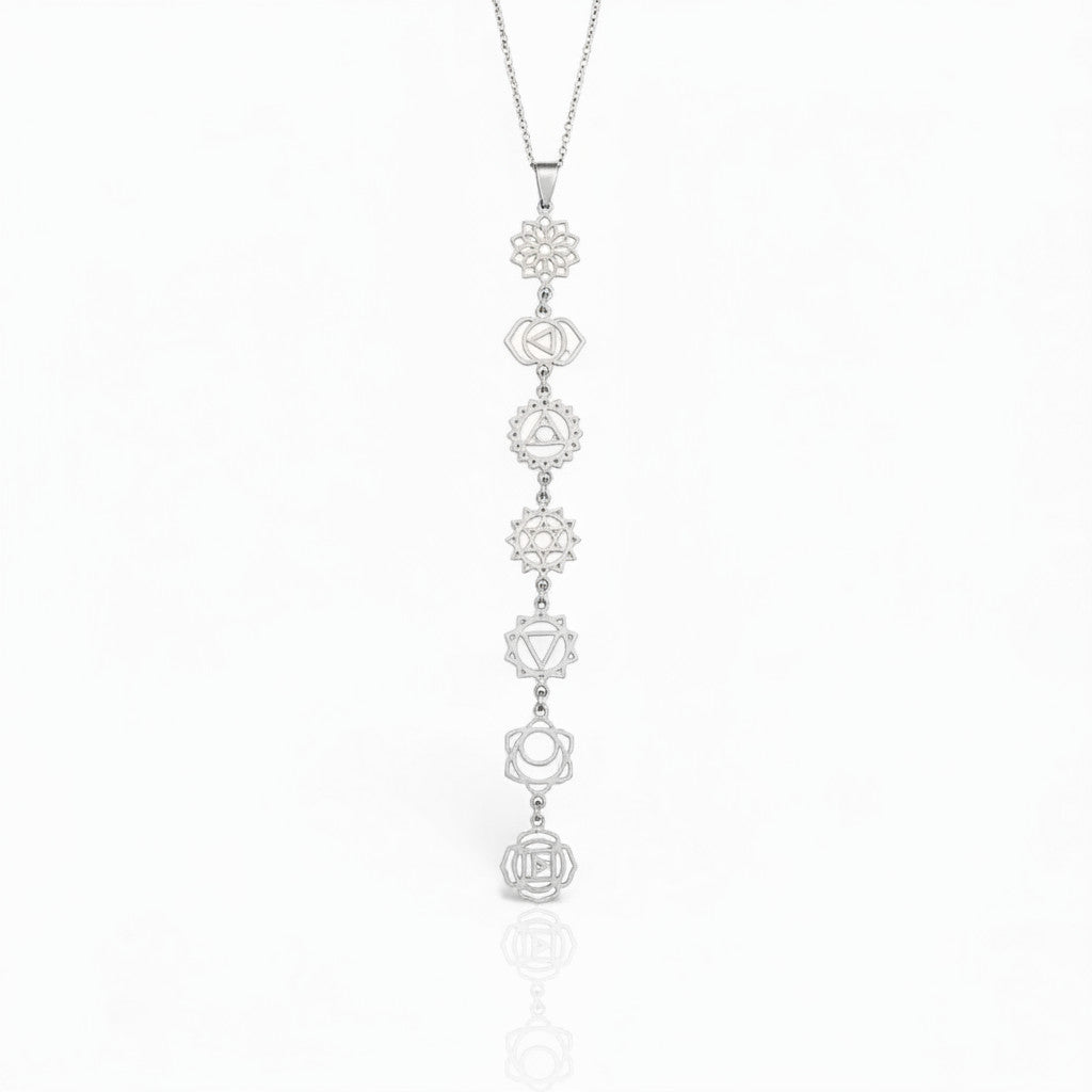 שרשרת צ’אקרות מעוצבת ומלאת משמעות, עם תליון הכולל את כל שבע הצ’אקרות מסודרות מלמעלה למטה – סמל להרמוניה, איזון וחיבור פנימי.