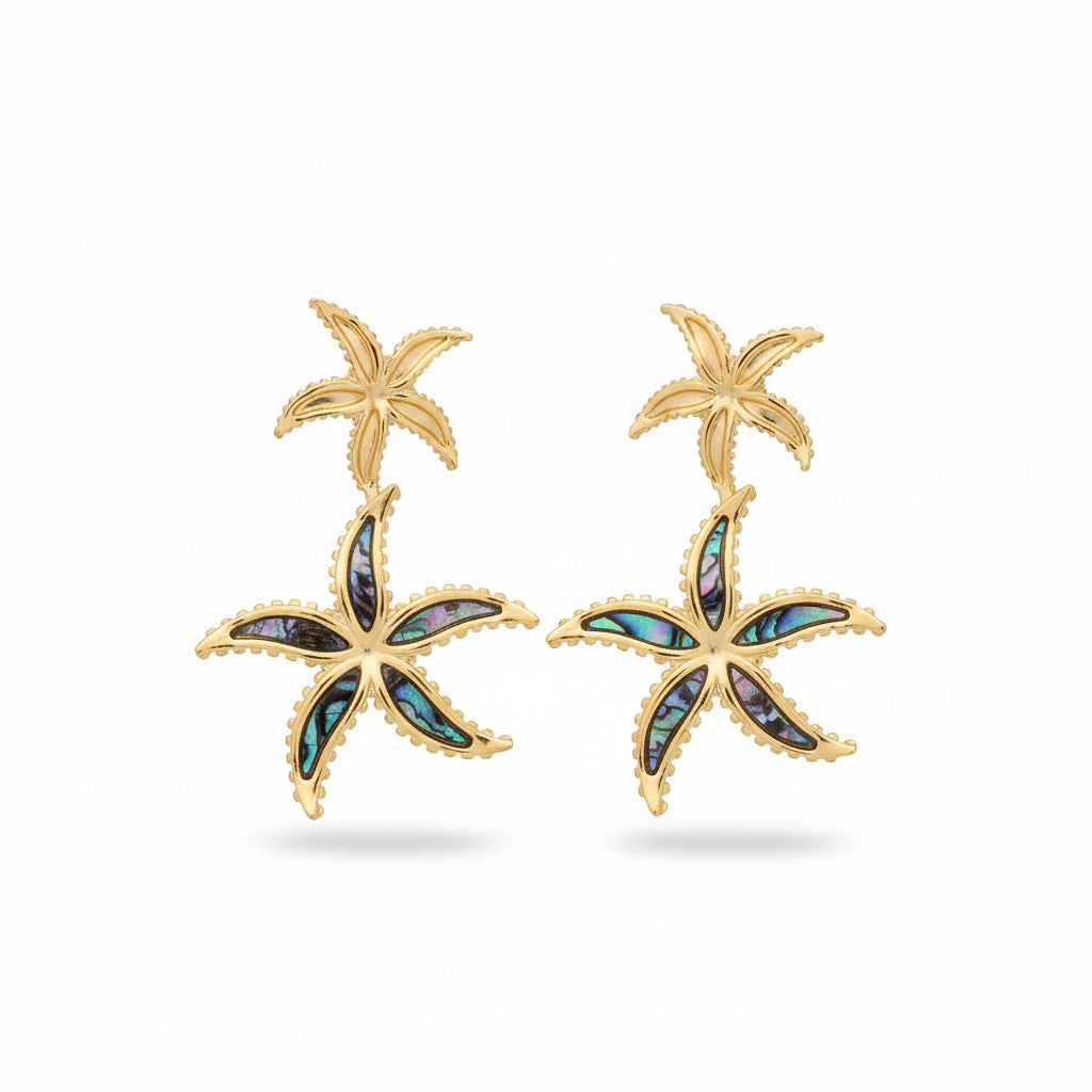 מחיר ליחידה / לכלעגילי סטיינלס סטיל זהב כוכב ים כפול עם דוגמת אבאלון