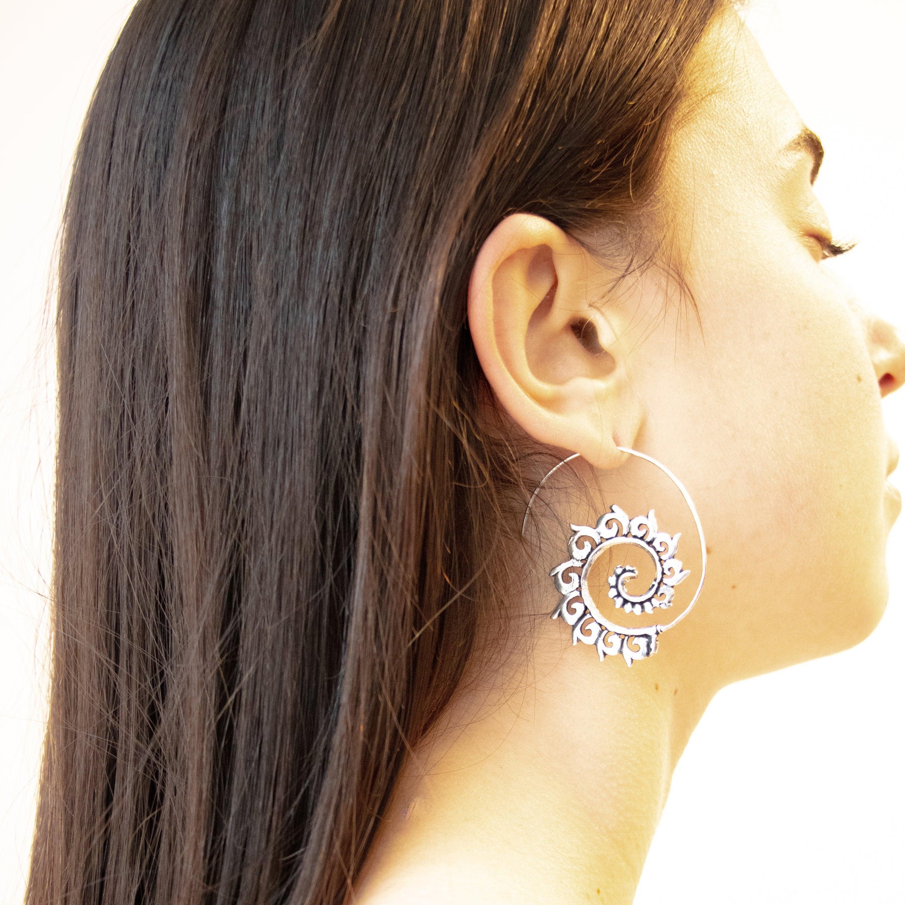 עגילי ספיראלה היוצרים צורה של חצי לב וביחד משלימים ללב שלם