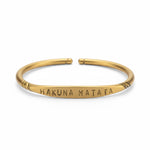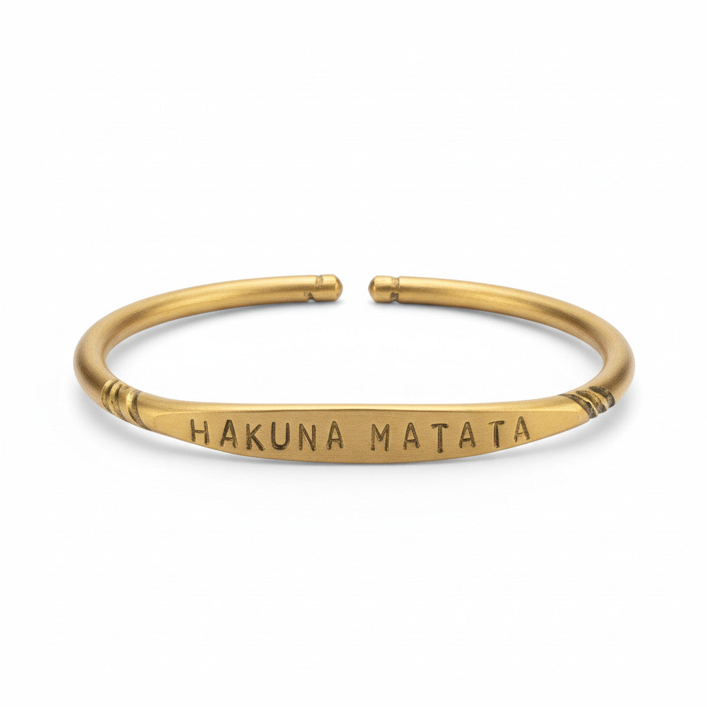 צמיד פתוח בעיצוב נקי ומשמעותי, עשוי בראס איכותי בגוון זהב עתיק, עם חריטת Hakuna Matata – תזכורת יומיומית לבחור קלילות, שקט ונינוחות. עמיד במים, נוח ללבישה ומתאים לכל מי שאוהב מראה עתיק וטבעי שאפשר גם להבריק למראה בוהק יותר.