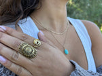 הטבעת עשויה מחומר בראס (פליז) שילוב מתכות של נחושת ואבץ שיוצרות את הצבע המזהב האתני העתיק, או מציפוי כסף שאינו עמיד במים ומומלץ לשמור לשימוש ארוך וממושך
