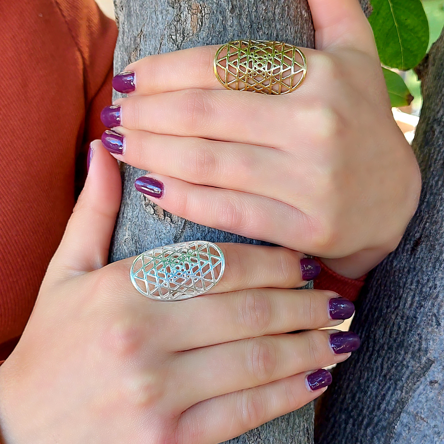 מחיר ליחידה / לכלטבעת גדולה עם סמל של שרי יאנטרה שהוא סמל שבו מגן דוד במרכז גדל למגני דוד נוספים