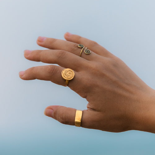 הטבעת עשויה מחומר בראס (פליז) שזה הנחושת והאבץ אשר יוצרים את הצבע המוזהב ועמידה במים, או מציפוי כסף שאינו עמיד במים ומומלץ לשמור לשימוש ארוך וממושך