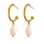 עגילים של חצי חישוק עם תליון של פנינה טבעית
