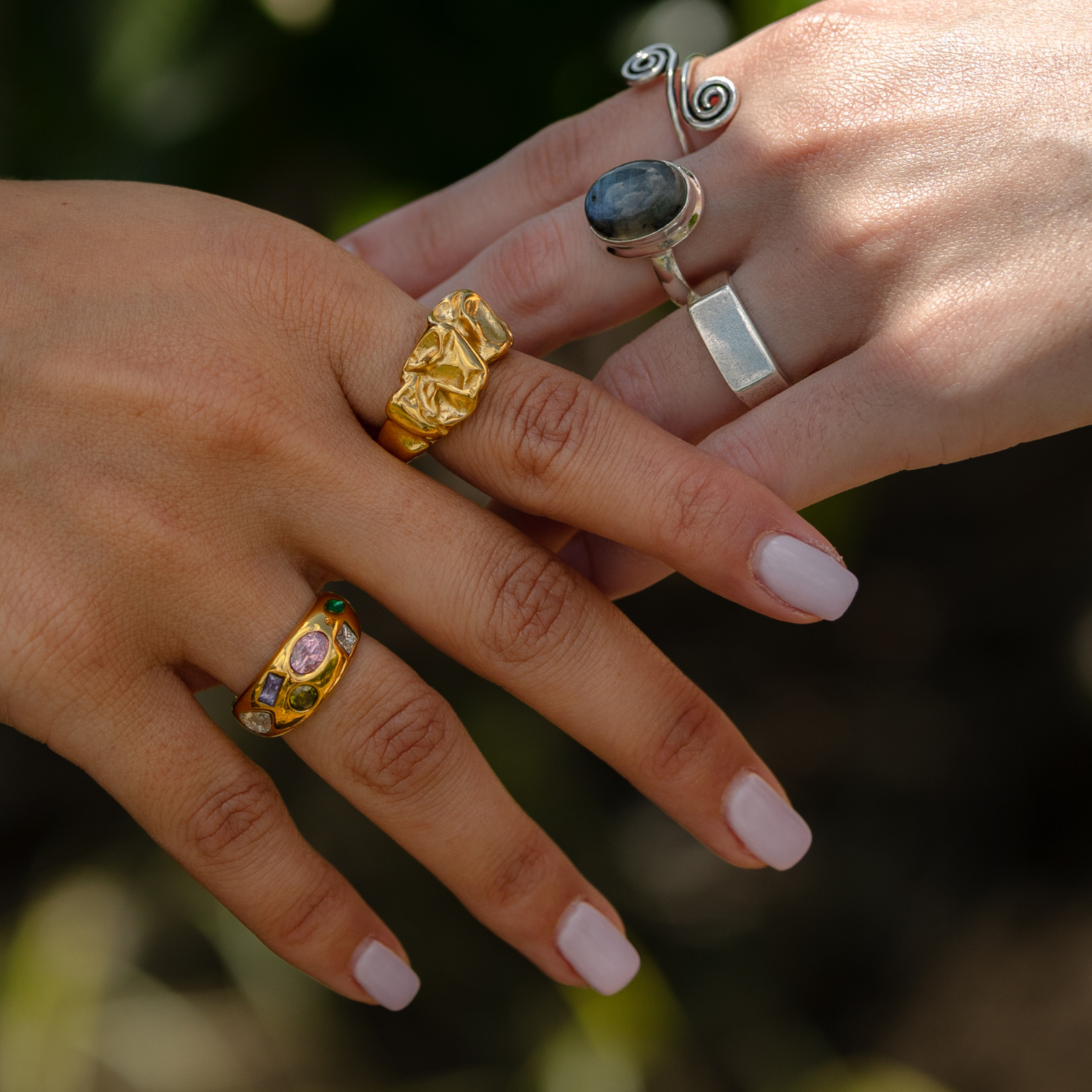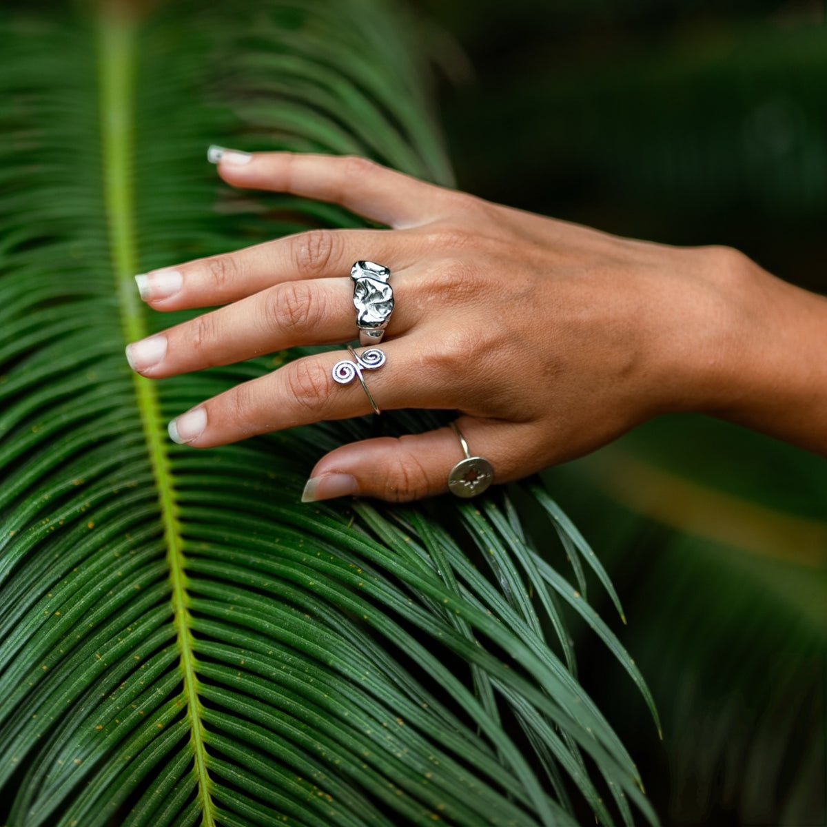 טבעת פתוחה בגימור גולמי שילוב מושלם בין טבע פראי לסטייל מודרני. עשויה סטיינלס סטיל איכותי,עם אופציה לציפוי זהב, לא מתפשרת על נוכחות. מוצר באיכות פרימיום ועמיד במים.