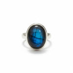 • אבן מרכזית: לברדורייט טבעית בעיצוב קבוקשון אובלי עם ברק כחול־ירקרק מחליף גוונים