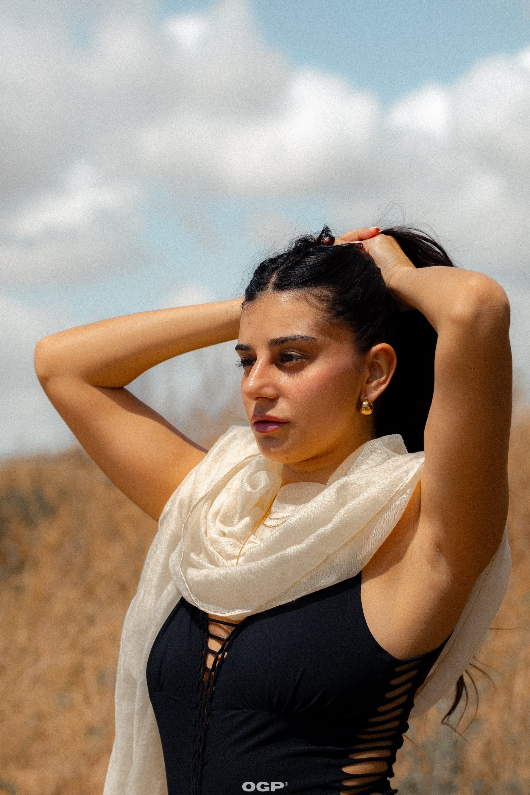 מלפפים את החוט סביב הצוואר כך שינוע בחופשיות ולאחר מכן נשחרר אותו בהתאם לאורך הרצוי לכיוון מרכז החזה. נסמן את נקודת מהפגש של שני קצוות החוט ונצמיד לסרל של סנטימטרים.