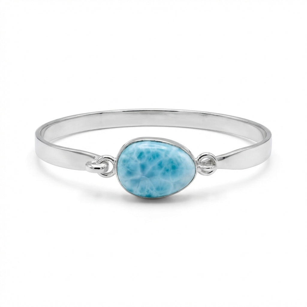 צמיד נפתח בעבודת יד עם טקסטורה עדינה, בשילוב אבן לרימר אובלית בגוון תכלת-ים. הלרימר נחשבת לאבן של רוגע, חיבור לאנרגיית המים וריפוי רגשי. הצמיד משלב מראה טבעי עם עיצוב מינימליסטי מדויק, שמתאים לשימוש יומיומי או כשכבה אלגנטית בלוק רב-תכשיטי.