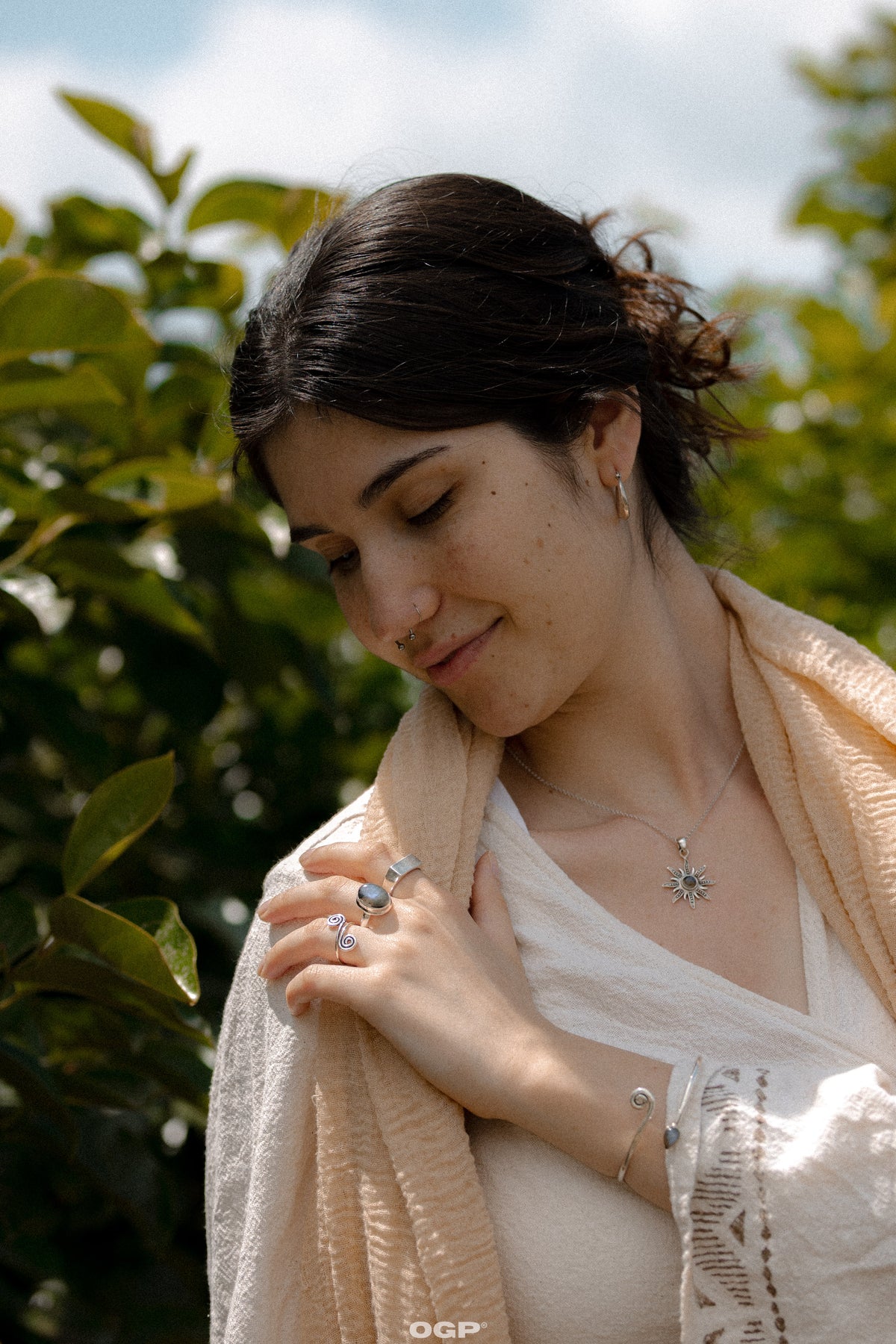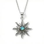 תליון שמש מכסף סטרלינג 925 עם אבן לברדורייט טבעית – אבן המחוברת לאינטואיציה, הגנה אנרגטית וראייה פנימית. עיצוב השמש מסמל אור, חיות ותנועה מתמדת, ומשלב בין קרני השמש לבין עומק האבן, ליצירת תכשיט עם נוכחות רכה ועוצמה שקטה.