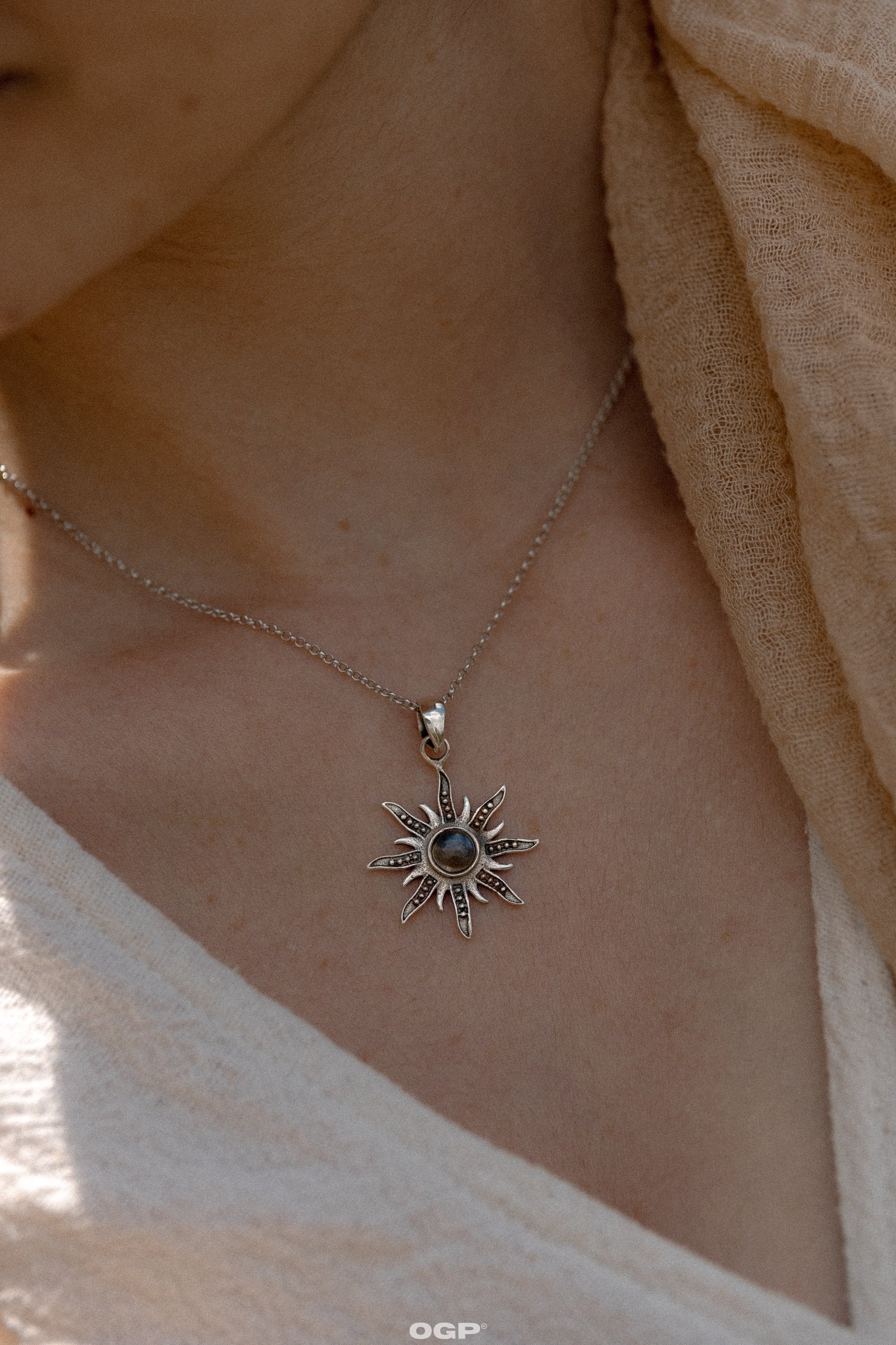 מחיר ליחידה / לכלתליון שמש מכסף סטרלינג 925 עם אבן לברדורייט טבעית – אבן המחוברת לאינטואיציה, הגנה אנרגטית וראייה פנימית. עיצוב השמש מסמל אור, חיות ותנועה מתמדת, ומשלב בין קרני השמש לבין עומק האבן, ליצירת תכשיט עם נוכחות רכה ועוצמה שקטה.