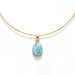שרשרת קולר עדינה בציפוי זהב אמיתי, משולבת בתליון לרימר טבעי בגוון תכלת-ים רך וייחודי.