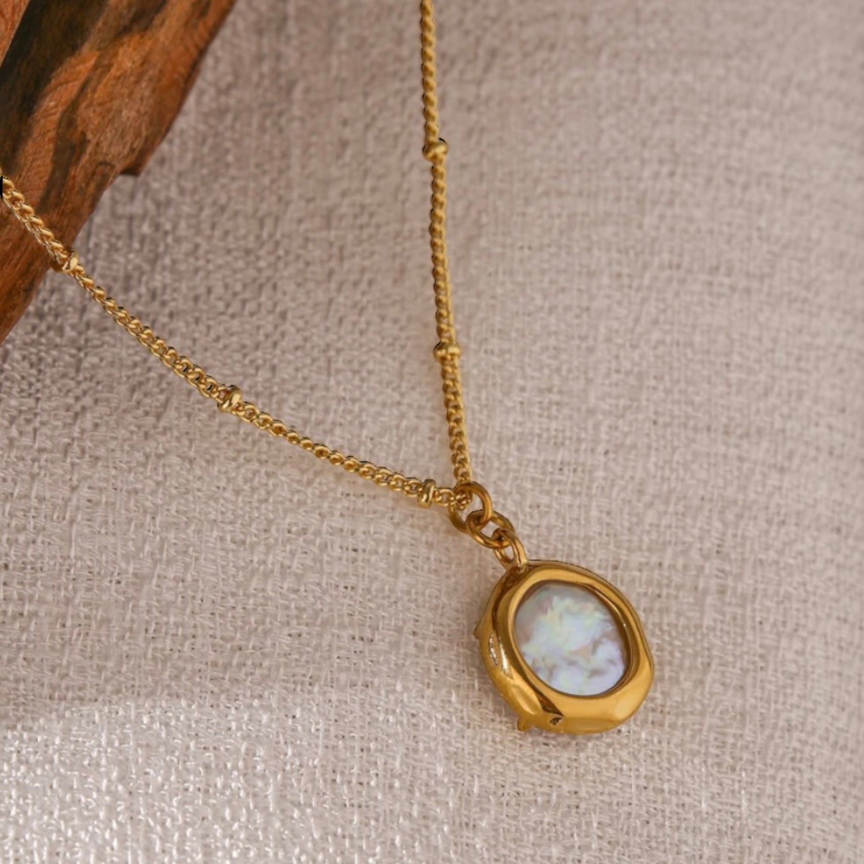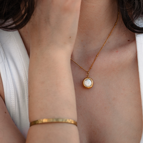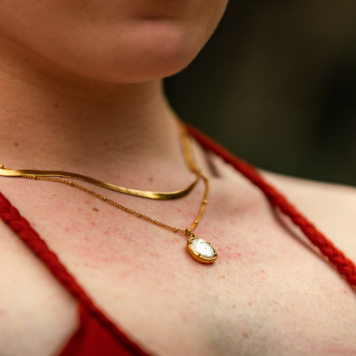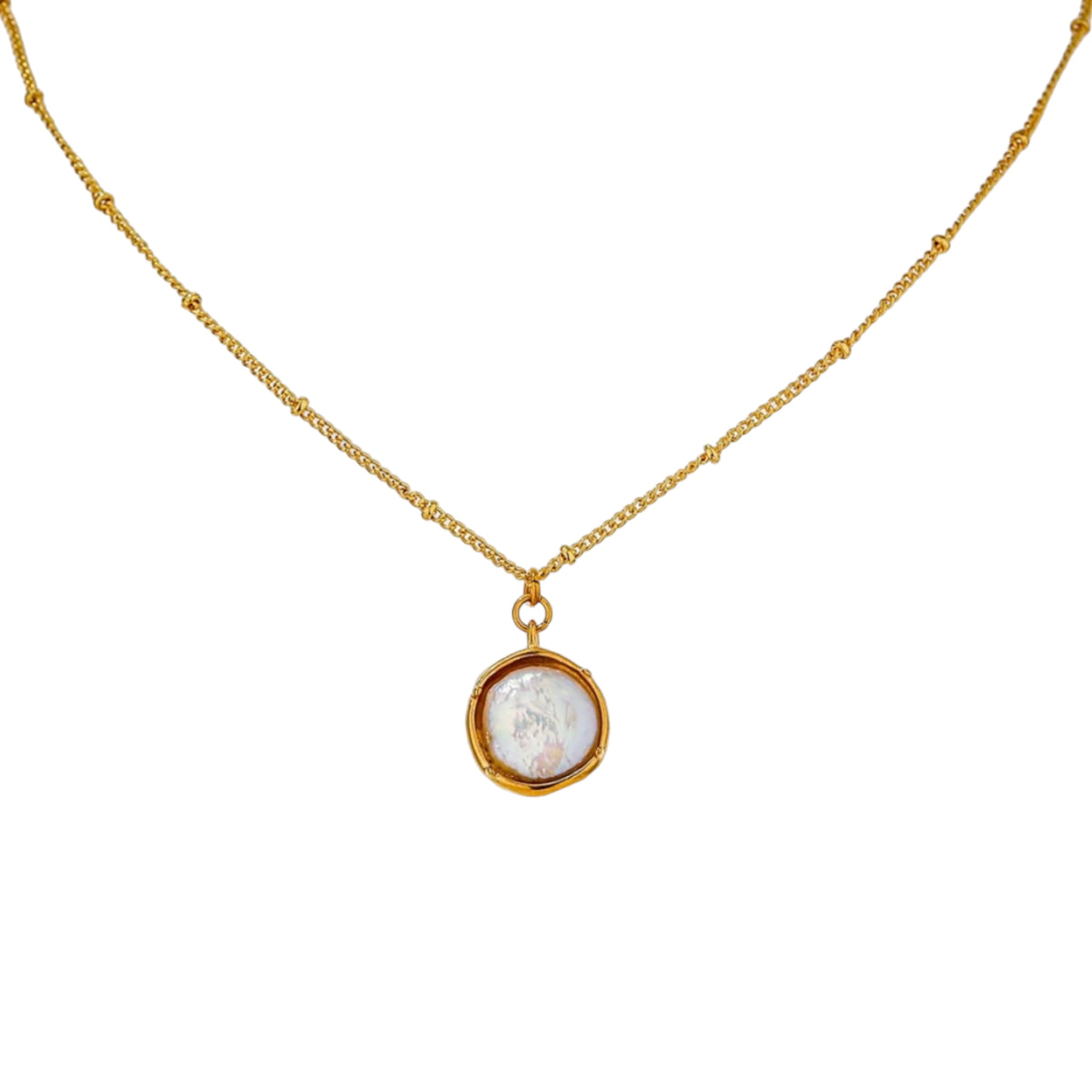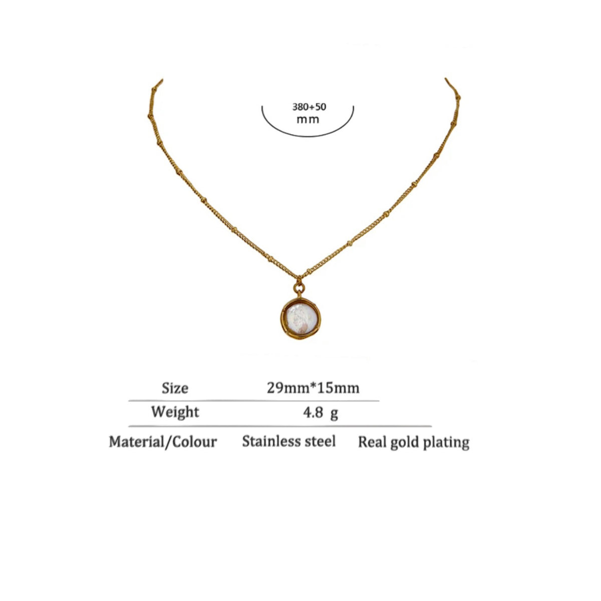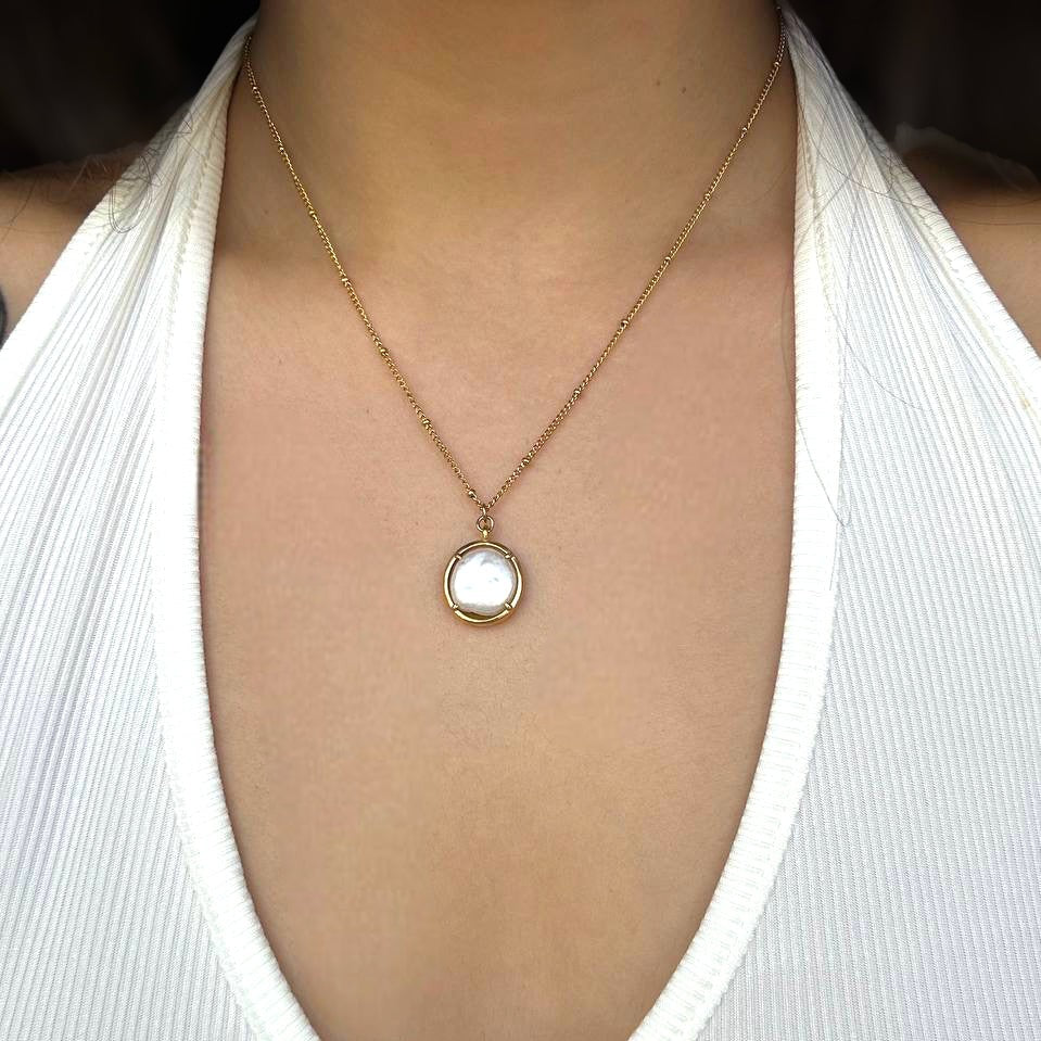 שרשרת מעוצבת עם אבן פנינה מחומר עמיד של פלדת אל חלד
